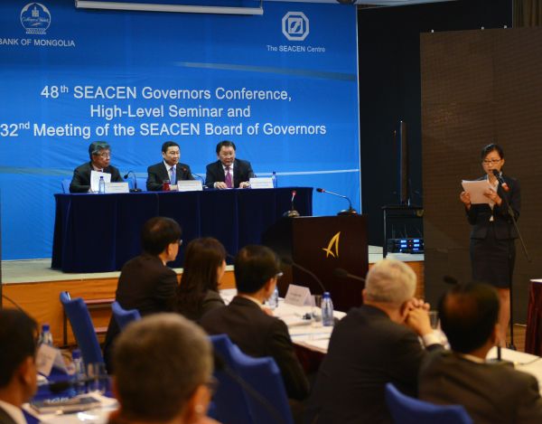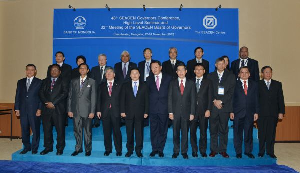 Зүүн өмнөд Азийн Төв банкуудын ерөнхийлөгч нарын 48 дахь удаагийн чуулга уулзалт, Зүүн өмнөд Азийн Төв банкны захирлуудын зөвлөлийн 32 дахь удаагийн уулзалт Улаанбаатар хотод болж байна. Олон улсын төлбөр тооцооны банкны ерөнхий захирал ноён Ж.Каруана, ОУВС-гийн төлөөллийн тэргүүн ноён Ж.Алмекиндерс тэргүүтэй 17 улсын 60 гаруй төлөөлөгчид оролцож байгаа энэ уулзалтаар Олон улсын санхүүгийн зах зээлийн харилцан хамаарал, мөнгөн хөрөнгийн урсгалын өндөр хэлбэлзлийн тухай болон Олон улсын санхүүгийн зах зээлийн шинэ зохион байгуулалтын талаар илтгэл тавьж, хэлэлцүүлэг өрнүүлж байна.