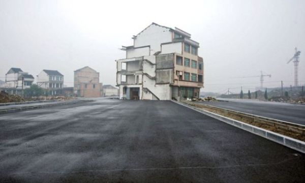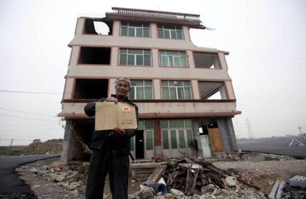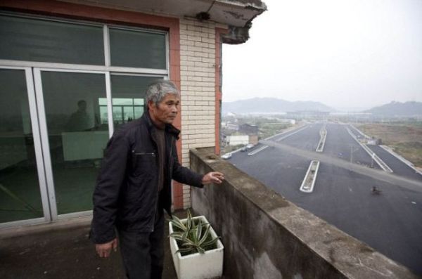Хятадын Венлин хотын захиргаа хурданы зам барихаар болжээ. Улмаар төлөвлөгөө гаргаж, зам дагуух айлуудаас газрыг нь худалдан авч, өөр газарт нүүлгэн шилжүүлсэн байна. Харин ганц айл нүүхээс татгалзаж, нутгийнхаа захиргаатай хөлсөн дээрээ тохироогүй ажээ. Тиймээс түүний гэрийг тойруулан хурдны замыг барьсан байна. Шинэ хурдны замаар явж байгаа жолооч нар газраа зараагүй хөгшдийг байнга хараадаг ажээ.