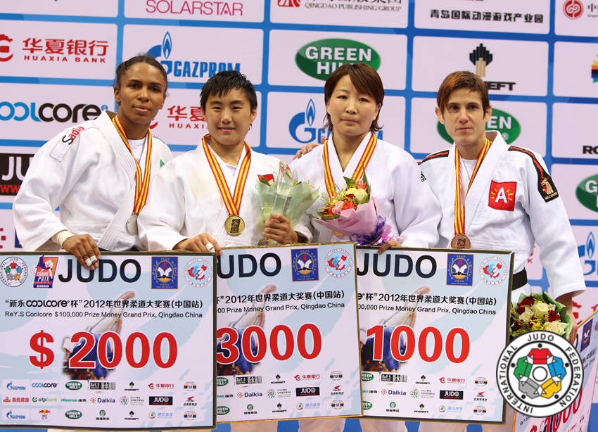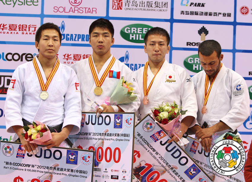 БНХАУ-ын Чиндао хотод жүдо бөхийн Гран при тэмцээн өнөөдөр эхэллээ. Нийт 100 мянган ам.долларын шагналын сантай тус тэмцээн 18 орны 181 жүдоч (эрэгтэй 97, эмэгтэй 84) хүч үзэж буй. Өнөөдөр уламжлал ёсоор хөнгөн жингийн барилдаан болж, Монголын цагаан өмсгөлтнүүд гурван алт, хоёр мөнгө, хоёр хүрэл медаль хүртэж бахдам амжилтыг үзүүллээ. Эрэгтэйчүүдийн 60 кг-ын жинд Г.Хэрлэн, 66 кг-д Д.Төмөрхүлэг, эмэгтэйчүүдийн 57 кг-д Д.Сумьяа нар аваргалсан бол эрэгтэйчүүдийн 60 кг-д Д.Амартүвшин, 66 кг-д Б.Хишигбаяр нар мөнгө, 73 кг-д Г.Одбаяр, эмэгтэйчүүдийн 52 кг-д М.Уранцэцэг хүрэл медалиар энгэрээ цоолов. Ингээд эхний өдөр манай жүдочид хэрхэн барилдсныг хүргэе.