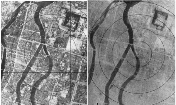 Хирошимагийн бөмбөгдөлтийн өмнө болон хойно.