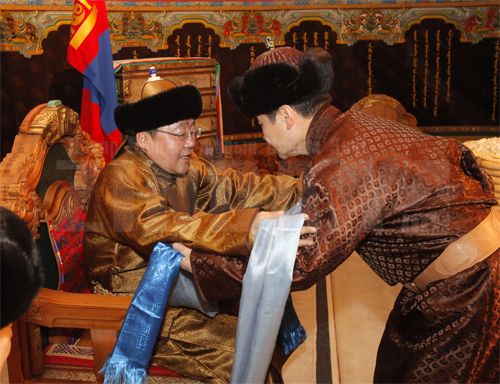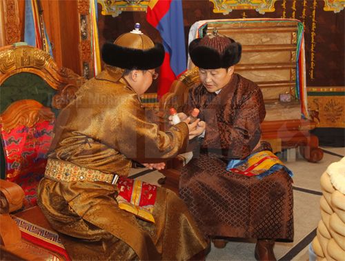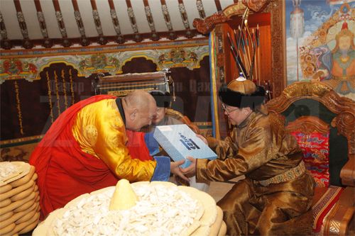 Үүний дараагаар төр нь шашиндаа, шашин нь төрдөө хүндэтгэл үзүүлэн Гандантэгчинлэн хийдийн хамба, гавж Д.Чойжамц, Дашчойлан хийдийн тэргүүн хамба Ч.Дамбажав нар Төрийн гурван өндөрлөгийн амар мэндийг мэдэж золголоо.