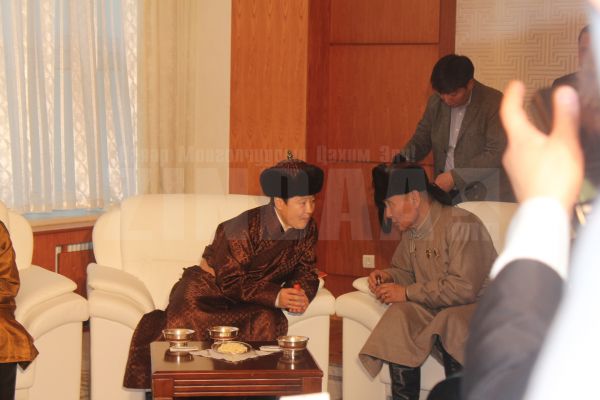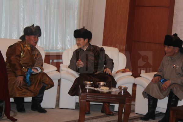 “Тийн ялгуулсан” хэмээх усан могой жилийн Шинийн нэгний билэгт сайн өдрийн наран ургахтай зэрэгцэн төрийн гурван өндөрлөг Төрийн их хүндэтгэл Есөн хөлт цагаан тугандаа мөргөж, Төрийн ёслол хүндэтгэлийн гэр өргөөнд төрийн золголт хийгээд өндөр настан азай буурлуудаа хүндэтгэн золголоо.Төрийн гурван өндөрлөг ахмад настны төлөөлөлтэй золгож, дурсгалын зураг татуулсны дараа Монголын ард түмэндээ мэндчилгээ дэвшүүлсэн юм. Монгол Улсын Ерөнхий сайд Н.Алтанхуяг хэлсэн үгэндээ “Луу жил Монголын маань ард түмэнд ээл ивээлтэй жил байлаа. Шинэчлэлийн Засгийн газар усан могой жилд улсынхаа хөгжлийг урагшлуулахын төлөө хичээн ажиллах болно. Түмэн олон маань ч гэсэн эрвийх дэрвийхээрээ хөдөлмөрлөж, төр түмэн хамтын хүчээ нэгтгэе” гэлээ. Түүнчлэн Засгийн газрын тэргүүн “Цагаан сарын баяр бол ахас ихсээ хүндэтгэдэг ураг төрлийн дээд баяр. Энэ баяраар монгол түмэн минь нэгэн нас нэмлээ гэж, хахир өвлийг мэнд давж урин хавартай энх золголоо гэж ураг төрлөөрөө цугларч ирэх сайхныг зөгнөн ярилцдаг. Цагаан сэтгэлт зон олон минь цагаан идээгээ дээжлэн Сар шинэдээ сайхан шинэлээрэй” хэмээн ерөөлөө.