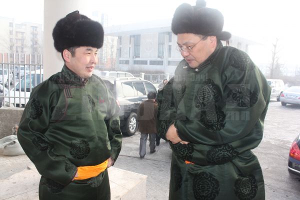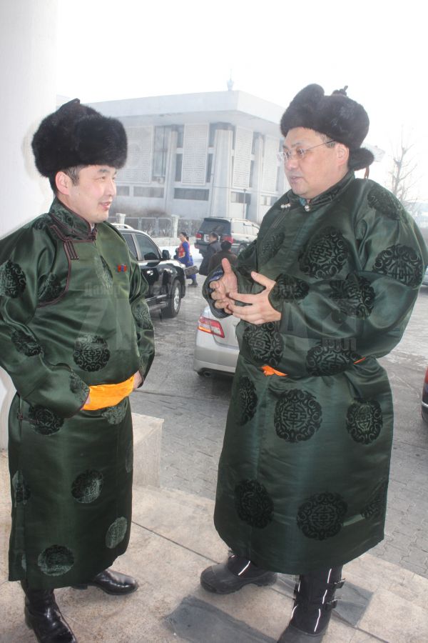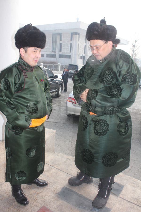 "Хатагтай" эмнэлэгийн ерөнхий эмч А.Отгонболд, УИХ-ын гишүүн О.Баасанхүү нар өнөөдөр ногоон өнгийн дээлээр ижилсэн бараг л адилхан малгай өмссөн байлаа. Тэдний энэ давхцал санаандгүй байсан ажээ. Ингээд тэднийг МАХН-ын байрны гадна ярилцаж байхад дурандсанаа хүргэе.