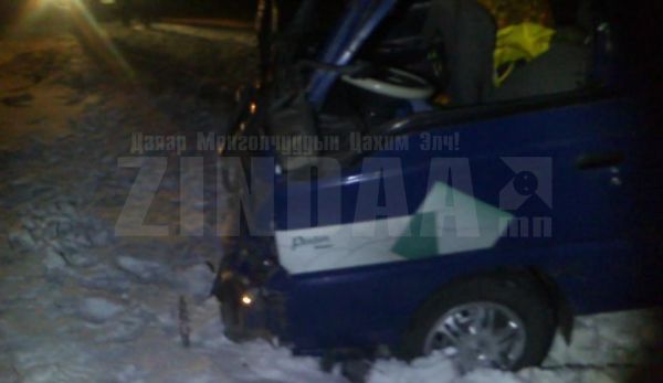 Өчигдөр 22 цаг 12 минутанд Мэдээлэл, Шуурхай удирдлагын төвп “БЗД, Налайхын постын зүүн талд 2 автомашин мөргөлдөж 2 хүн хавчуулагдсан” гэсэн дуудлага ирсэн байна. Дуудлагын дагуу Шуурхай бүлэг 105-ын аврах тасаг шуурхай ажиллан хаяган дээр очиход Тоёота Карина, Хьюндай Портер маркын автомашинууд мөргөлдсөн байжээ. Ослын улмаас суудлын автомашины жолооч Ю.Ө /29 нас, эр/ цээж нурууны гэмтэлтэй, биеийн ерөнхий байдал хүнд, зорчигч Г.Ц /26 нас, эм/ тархины хүнд гэмтэлтэй биеийн байдал маш хүнд, Портер автомашины жолооч Я.Д зүүн хөл хугарсан, цээжний гэмтэлтэй биеийн байдал хүнд, зорчигч Х /38 нас, эм/ нүүр шилэнд зүсэгдсэн, биеийн байдал хөнгөн, Б.М /17 нас, эр/ зүүн хөл гэмтэлтэй биеийн байдальай байжээ. Тэдэнд яаратай эмнэлэгийн үйлчилгээ үзүүлж, ЯТТ 103-н 1 автомашин болон УБЦ 03-05 автомашинаар тээвэрлэн 23:30 цагт ГССҮТ-ийн эмч Сайнбаяр, Мөнхдөл нарт хүлээлгэн өгсөн байна.