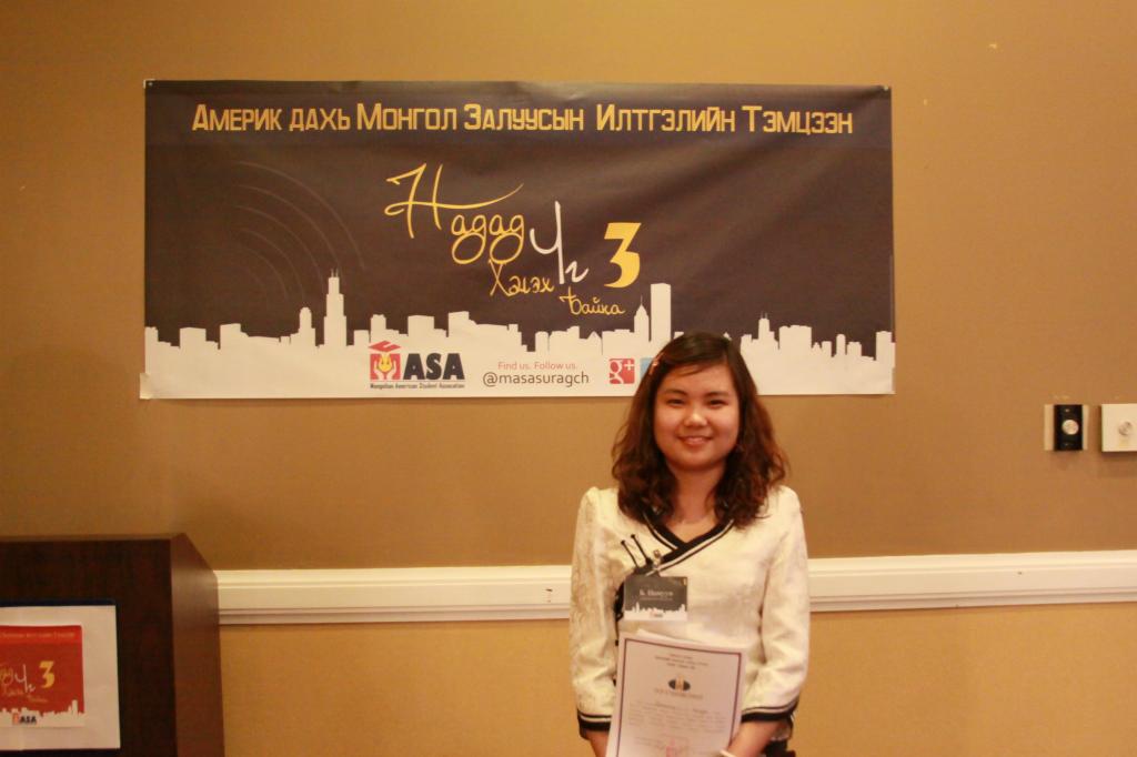 11. Хилийн чанадад амьдарч буй Монгол Улсын иргэдтэй хамтран ажиллах зөвлөл, БСШУЯ -тай хамтран зохион байгуулсан "Эх орныхоо хөгжилд миний оролцоо" сэдэвт эссэ бичлэгийн уралдаанд "Монголын төлөө цохилох зүрх" нийтлэлээрээ "тусгай байр" эзлэв.