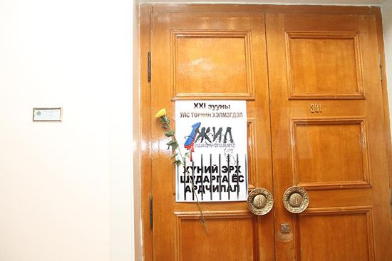 Өнгөрсөн жилийн наймдугаар сарын гуравны өдөр Сүхбаатар дүүргийн шүүхийн гаднах талбайд УИХ-ын гишүүн Л.Цог, З.Баянсэлэнгэ нараар ахлуулсан МАХН-ын 60 гаруй гишүүн шар өнгийн цэцэг цацаж шударга ёсыг булшилсан шүүгч нартай салах ёс гүйцэтгэж байгаагаа илэрхийлсэн билээ.