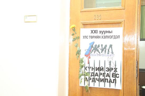 Одоогоос эг нэг жилийн өмнө буюу 2012 оны 4 сарын 12-ны өдөр МАХН-ын дарга Н.Энхбаярыг цагдаа, тусгайгийн хүчээр сүр дуулиантайгаар баривчилж байсан билээ. Эл өдрийг МАХН-ын удирдлага болон гишүүд дэмжигчид нь нэхэл хатуутайгаар сануулж байгаа аж. Өнөөдөр МАХН-ын гишүүд чуулганы танхимд "21-р зууны улс төрийн хэлмэгдүүлэлт"-ийн нэг жил гэсэн хуудсыг ширээн дээрээ тавьсан төдийгүй чуулганы танхимын хаалган дээр нь мөнөөхөн бичгээ нааж шар цэцэг хавчуулжээ. Шар цэцэг нь гашуудлыг илэрхийлдэг юм.