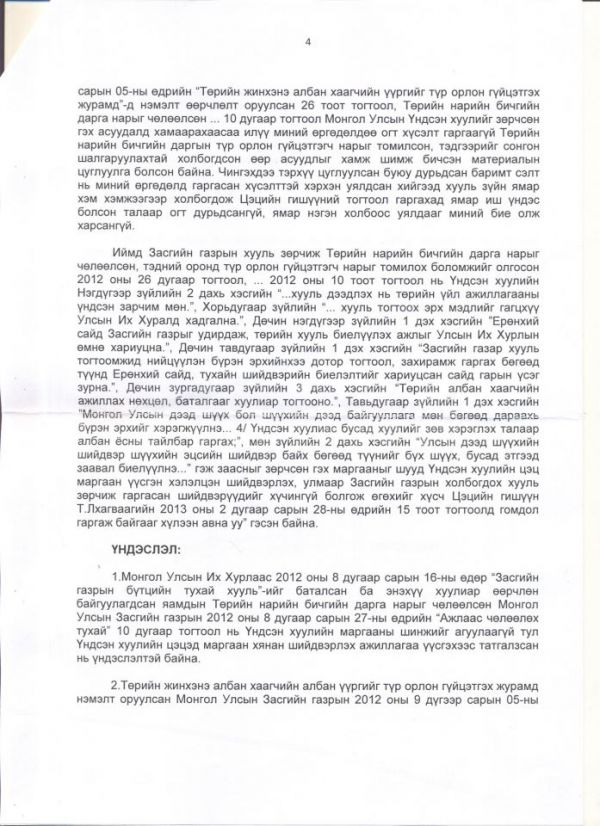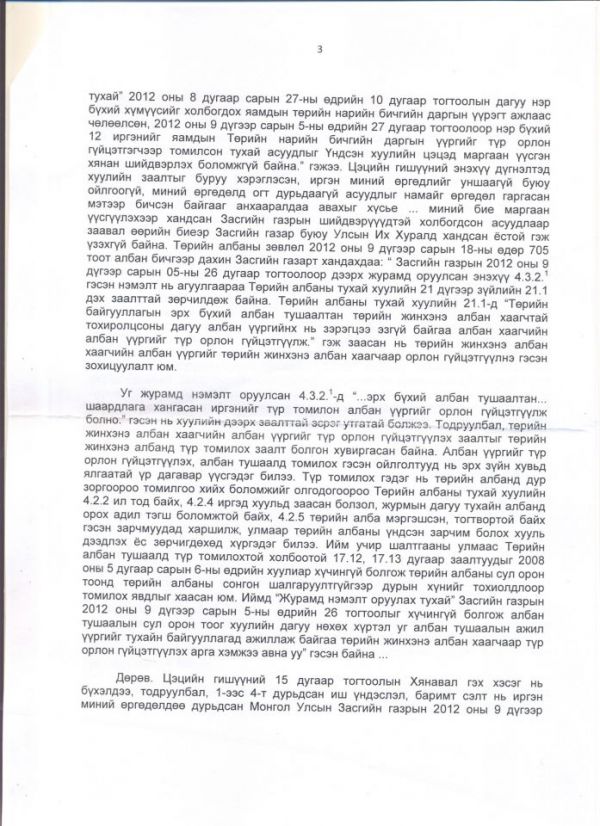 Түүнчлэн дээрх 6 зүйл асуудлаар албан ёсны байр сууриа илэрхийлэхийг Монгол Улсын Засгийн газарт хандан хүсч байгаа юм байна. Тэгэхээр бүгдийг халж шинэчлэхээр зорилго шулуудсан энэ Засгийн газар ийм хууль зөрчсөн шийдвэрүүдийнхээ араас ямар тайлбар хийхийг олон нийт харж, хүлээж байгааг сануулах нь зөв биз ээ.