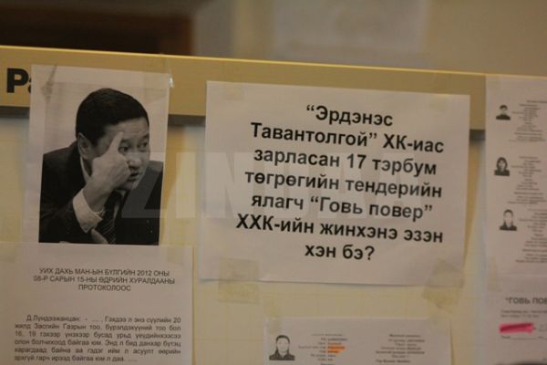УИХ-ын чуулганы нэгдсэн хуралдаанаар Ерөнхий сайд Н.Алтанхуягийг огцруулах тухай асуудал ид үргэлжилсээр. Энэ үеэр УИХ дахь МАН-ын бүлэг эрхэм сайдын хууль бус томилгоо, “Эрдэнэс Таван толгой” ХХК-иас зарласан 17 тэрбум төгрөгийн тендерийн ялагч “Говь повер” ХХК-ийн нууц ноёнтон хэн болох, Монго Улсын Засгийн газрын тогтоол болон Н.Алтанхуяг сайдын хэлсэн үг, УИХ-ын гишүүдийн тайлбар зэргийг УИХ-н чуулганы танхимын үүдэнд баримт сэлттэй нь дэлгэсэн байна.