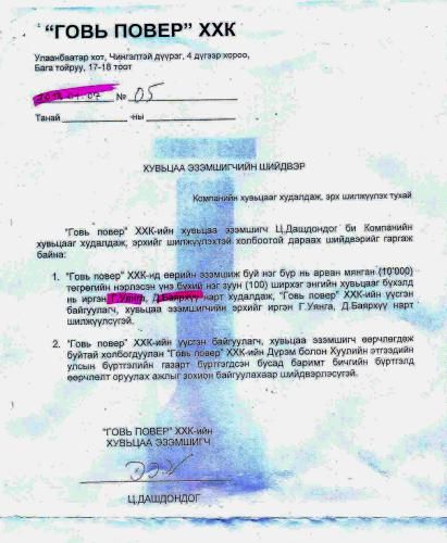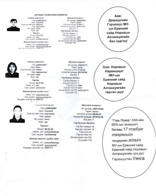 Үүгээр ч зогсохгүй тендерт ялсан “Говь повер” компанийн нэр дээр ч мөнөөхөн хоёр Уянгатай холбоотой материал бүрджээ.