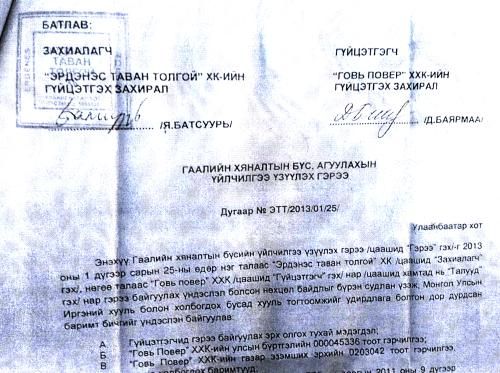 Мөн “Говь повер” компани нь Тавантолгойн тендерт оролцохоосоо өмнө компанийн өөрийнх нь үнэлгээ нэг сая төгрөг байсныг Г.Уянга худалдан авч, нэг өдрийн дотор бичиг баримтыг нь өөрчлөн, нэг тэрбум төгрөгийн үнэтэй болгож, тендерт оролцоод, долоо хоногийн дараа 17.7 тэрбум төгрөгийн үнэтэй тендерийг авсан байжээ.