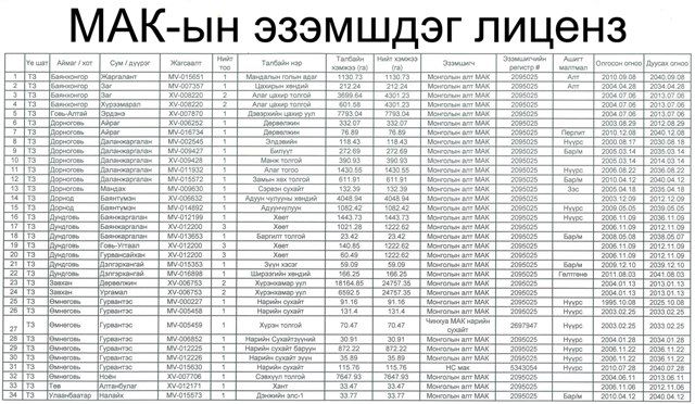 Стратегийн ач холбогдолтой, мөн стратегийн ач холбогдолтой гэж тогтоогдож болзошгүй хэд хэдэн томоохон ордын хайгуулын болоод ашиглалтын лицензийг эзэмшигч Монголын Алт компанийн мэдэл дэх лицензүүдийн талаарх нарийвчилсан ийм мэдээлэл байгаа юм. Нарийн сухайт, Цагаан суварга, Адуунчулуун, Хөөт гэхчлэн хэдэн арваар тоологдох ашигт малтмалын ордууд энэ компанийн мэдэлд бий аж. Лизенз эзэмших эрх нь дуусах хугацаануудыг нь харахад олонхи нь 2030 он хүртэлх болоод түүнээс хойшхи хугацаанд хүчин төгөлдөр байхыг та харж байна. Тэгэхээр нэгэн цагт тагнуулч явсан Б.Нямтайшир болоод өдгөө төр түшилцэж яваа хүү Н.Номтойбаяр нарын МАК компанийн мэдэлд монголын уул уурхайн баялгийн чамгүй хэсэг нь байгаа нь эндээс харагдаж байна.