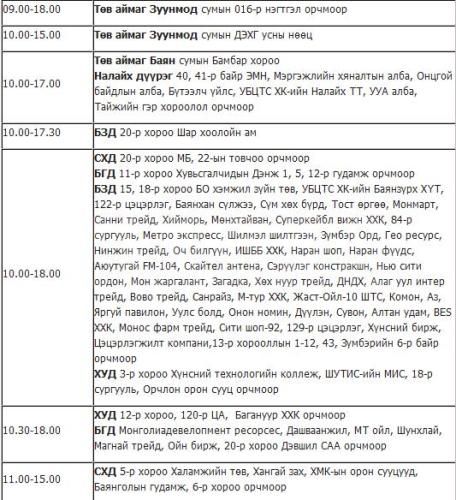 Их бүтээн байгуулалт, засварын ажил эхэлж байгаатай холбогдуулан тавдугаар сард айл өрх, албан байгууллагуудын цахилгаан шугам тоноглолд засвар хийж,  цахилгааныг түр хугацаагаар хязгаарлахаар болжээ.  Тэгвэл өнөөдрөөс эхлэн Цахилгааны хязгаарлалтанд эдгээр газрууд хамаарагдах юм байна.