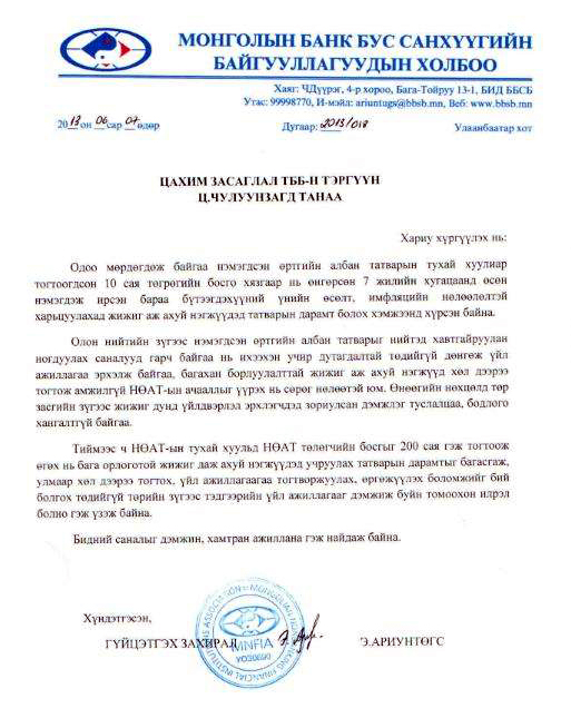 Энэ талаар МББСБ-ын холбооноос ирүүлсэн байр суурийг хүргэж байна.