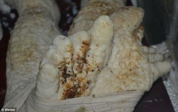 Харин цагдаа нар түүнийг судалж үзээд энэ хачин биетийн цээжин хэсэг нь үнэхээр хөлдсөн байсан боловч энэ нь маш дээд зэргийн чанартай резинээр хийгдсэн болохыг тогтоожээ.
