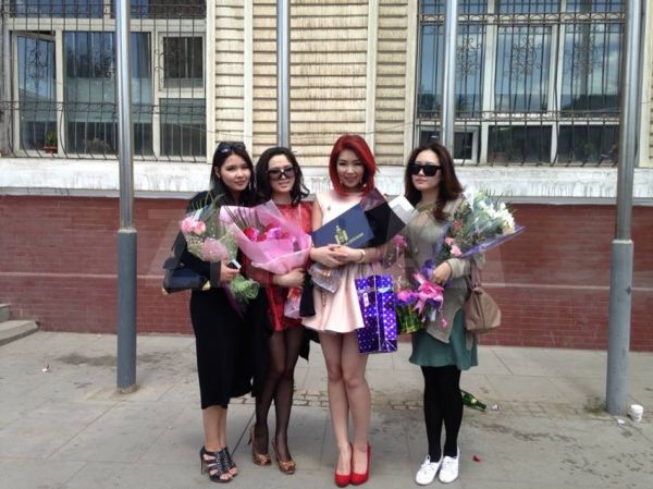 Э.Дөлгөөний хувьд, бусад охид шиг элдэв янзын дээл хувцсаар гоёхыг эрхэмлэсэнгүй. Тэрбээр энгийн атлаа тун чамин хийцтэй, богино атлаа дэрэвгэр хормойтой торгомсог даашинз өмсч иржээ. Хамтлагийнх нь найз нөхөд ч түүнд баяр хүргэж, сургуулийн гадаа хэрэндээ л хөгжилдсөн аж. Улаан үс, улаан өндөр өсгийт, шаргал өнгийн даашинзаар гоёсон Э.Дөлгөөн ангийнхан дундаасаа тун ч содон харагдаж байсан шүү.