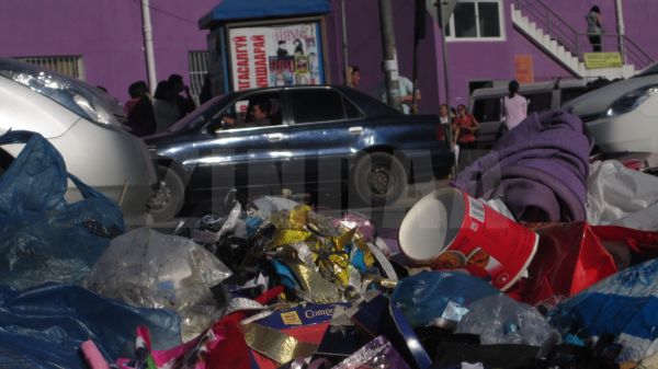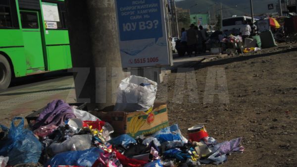 Өмнөх сурвалжлагаар хүргэж байсанчлан нийслэлийн төвд байрлах цорын ганц зах болох Бөмбөгөр орчмын гудамж мөн л овоорсон их хогтой байлаа. Энэ их овоорсон хогны хажуугаар түм түжигнэж бум бужигналдан хөлхөж хоол унд, хувцас хунар гээд амин зуулганыхаа бараа таваарыг зөөсөөр. Хүний хөлөөр тарах хогийг тоож байгаа хүн ч алга. Харин бараа таваарынхаа хайрцаг сав, баглаа боодол зэргийг тэвэрч авчиран дөхүүлж шидчихээд л буцаж байгаа хүн ч харагдана. Ядаж л хотын төв дэх цорын ганц худалдааны төвийнхөө ойр орчмыг хоггүй байлгаж болно доо, Үүл дарга аа.