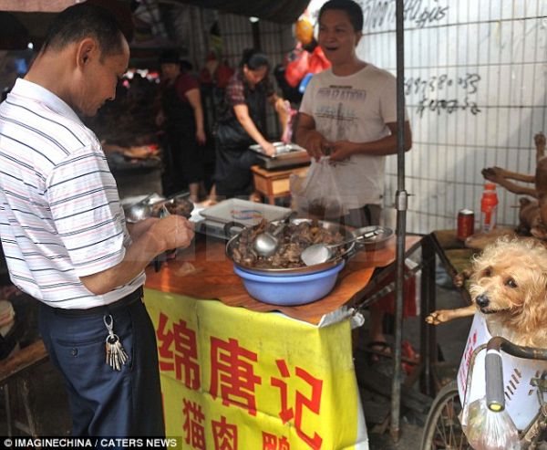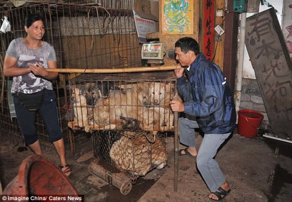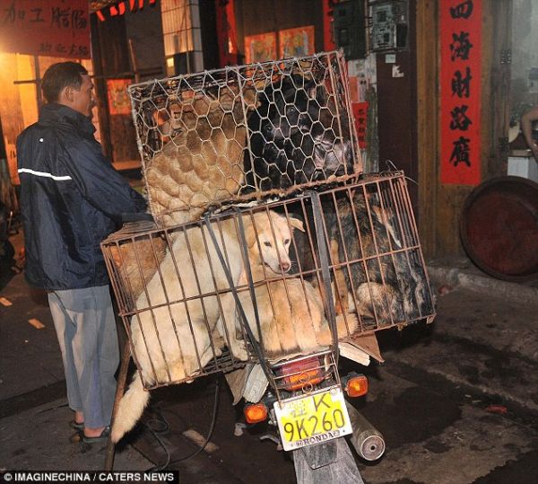 Энэхүү жил бүрийн нохойн махны баярын үеэр нохойг алж, арьсыг нь хуулан чанахаас өмнө тэднийг торонд хийж үзүүлэн болгож тавьдаг байна.