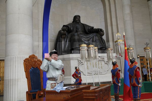 Монгол Улсын Ерөнхийлөгчийг тангараг өргөх ёслолын эхэнд эзэн Чингис хааны хөшөөний өмнө УИХ-ын хүндэтгэлийн чуулган хуралдсан юм. Уг чуулганд Ерөнхий сайд Н.Алтанхуяг, Засгийн газрын гишүүд, Үндсэн хуулийн Цэц, Улсын дээд шүүхийн гишүүд, гадаад, дотоодын зочид төлөөлөгчид оролцлоо. Гадаадын зочдын дунд Бүгд найрамдах Польш улсын Ерөнхийлөгч асан, Нобелийн шагналт, Польшийн ардчиллын бэлгэ тэмдэг Лех Валенса, АНУ-ын Төрийн нарийн бичгийн даргын ахлах зөвлөх Томика Тиллман, ОХУ-ын Холбооны зөвлөлийн нэгдүгээр орлогч дарга А.П.Торшин, БНХАУ-ын БХАТИХ-ын Байнгын хорооны дэд дарга Сянба Пинцуо, Японы Үндэсний аюулгүй байдал, хулгайлагдсан иргэд, байгалийн гамшгийн асуудал эрхэлсэн сайд Фүрүя, Энэтхэг улсын Шинэ болон сэргээгдэх эрчим хүчний сайд Ф.Абдулла, Францын Хөдөө аж ахуй, хүнс, ойн асуудал эрхэлсэн төлөөний сайд Г.Гаро, Ираны Газрын тосны сайд Р.Гасеми, БНСУ-ын Ерөнхийлөгчийн нарийн бичгийн дарга Жү Чол Ги нарын хүмүүс байв.
