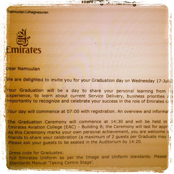 2013 оны дэлхийн шилдэг авиа компаниар тодорсон "Emirates airline" авиа компанид монгол бүсгүй ажиллаж эхэлжээ.Арабын Эмират улсын энэ авиа компанийнболовсон хүчнээ бэлтгэдэг ээлжит төгсөлтөөр Монгол Улсын иргэн Лхагвасүрэнгийн Намуулан 4000 хүнээс шалгарч, хагас жилийн хугацаанд дадлагажигчаар ажилласнаар тус компанийн үндсэн ажилтан болсон байна. Ингэснээр тэрбээр дэлхийн агаарын тээврийн тэргүүлэх зэрэглэлийн авиа компанид Монголоос ажиллаж буй анхны онгоцны үйлчлэгч болж байна. Л.Намуулан хамгийн том онгоц гэгддэг B777 болонхоёр давхар онгоц болох Airbus380-аар нисэхээр мэргэшсэнаж.