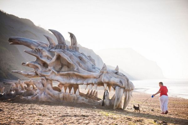 Английн графикч залуу тэнгисийн эрэг дээр лууны толгойг хийж тавьсан нь орон нутгийн иргэдийн болон жуулчдын анхаарлыг ихээр татдаг аж. Яг л өгөршсөн яс шиг харагдах эл бүтээл нь түүний энгийн л нэг загвар гэнэ.