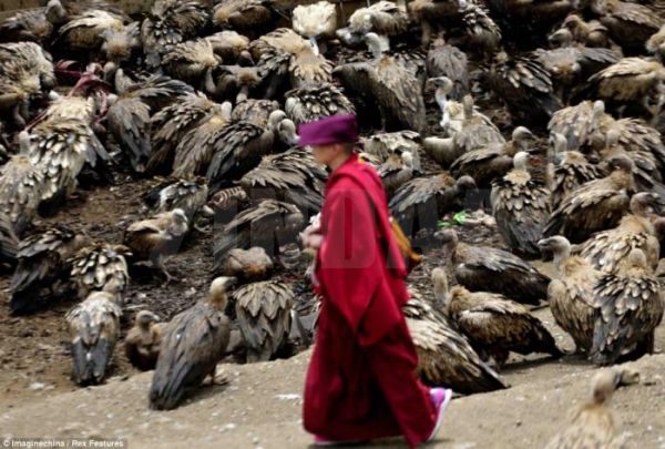 Төвд ёсны оршуулга буюу "Тэнгэрийн оршуулга" гэх зан үйлийг гадаадын жуулчид ихээр сонирхдог аж. Эл зан үйл нь нас барсан талийгаачаа махчин шувуудад хэсэгчлэн хувааж өгөх "оршуулга" юм. Эл оршуулгын газарт саяхан "Чимээгүй цамхаг" барьж босгосон бөгөөд дан чулуун сийлбэр бүхий эл цамхаг нь хүний гавлын ясыг дүрслэсэн чимэглэлтэй.