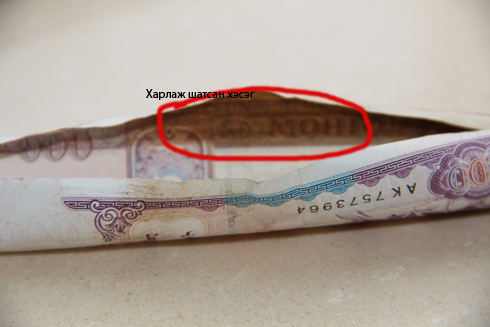 Таны харж буй энэ зуун төгрөг бол гэмт хэргийн гэрч. Хичээнгүйлэн хуйлж голыг нь шатаасан энэ 100 төгрөгийг ашиглан хэн нэгэн нь дэлхий нийтийг нөмрөн буй чимээгүй цагаан тахал болсон хөнөөлт хар тамхийг хэрэглээд олны хөлийн газар ил цагаан хаясан бололтой.Аль эсвэл хаа нэгтээгээс салхины аясаар туугдан хөөгдөн хийсч ирсэн биз ээ.