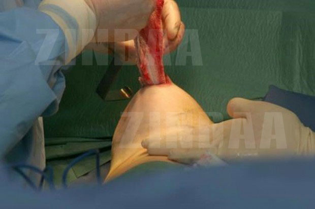 Марль хийн цус болон нөжийг шингээн авч цэвэрлэж байгаа байдал. Дараагаар нь марлта гаргаж авна.