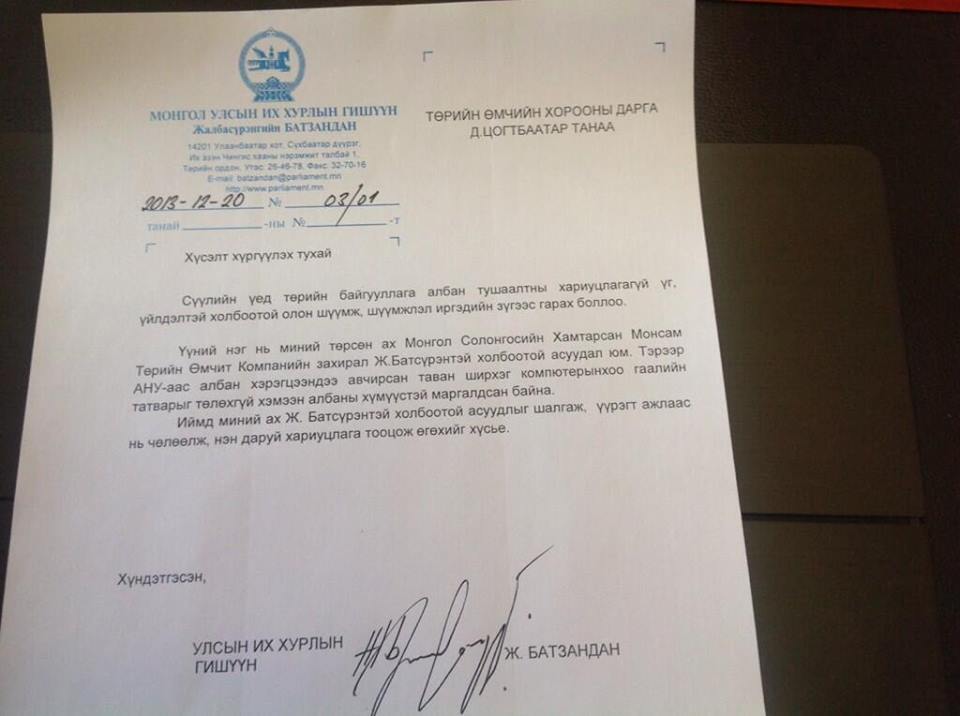 Тэгвэл яг үүн шиг тохиолдол Монголд гарав. Гарах гарахдаа, УИХ-ын гишүүн Ж.Батзандангаас гарлаа. Тэрбээр төрсөн ах Ж.Батсүрэнгээ Төрийн өмчийн хороонд шалгуулах хүсэлт гаргасан бөгөөд нэн даруй шалгаж, үүрэгт ажлаас нь буулгахыг хүссэн байх юм.