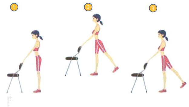 2.Сандлаас барингаа зүүн хөлөө эгцээр нь арагш хойш чадах хүртлээ өргөн аажим бэлдэх байдалд эргэн орно.Энэ дасгалыг 20 удаа хийнэ.