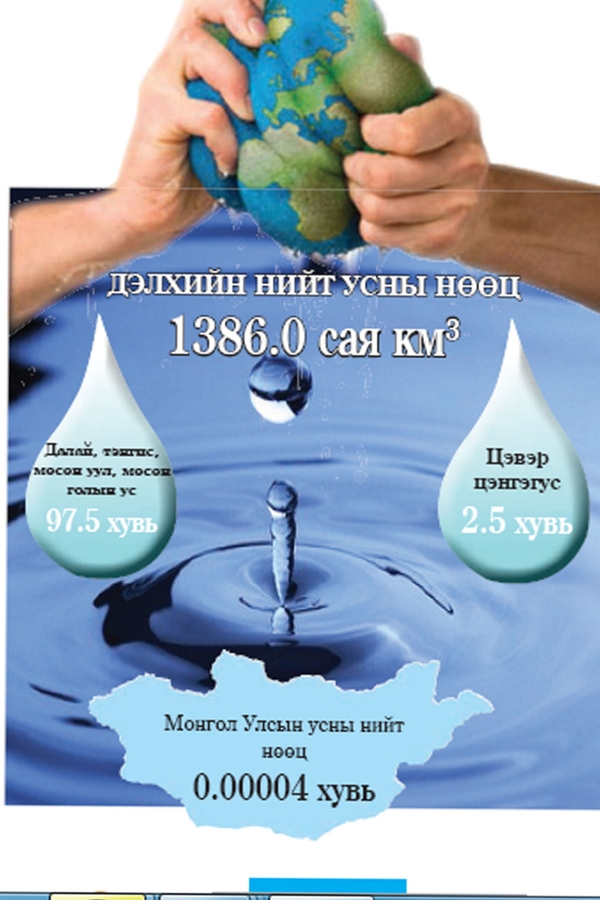 Ус сувгийн салбарын мэргэжилтнүдийн судалгаагаар, Улаанбаатар хотын усны хэрэглээ энэ хэвээрээ байвал 2016 он гэхэд хомсдолд орохоор болжээ. Судалгааны явцад нийслэл орчмын усны түвшин буурч, бохирдол нь дээд түвшиндээ хүрснийг тогтоосон байна.