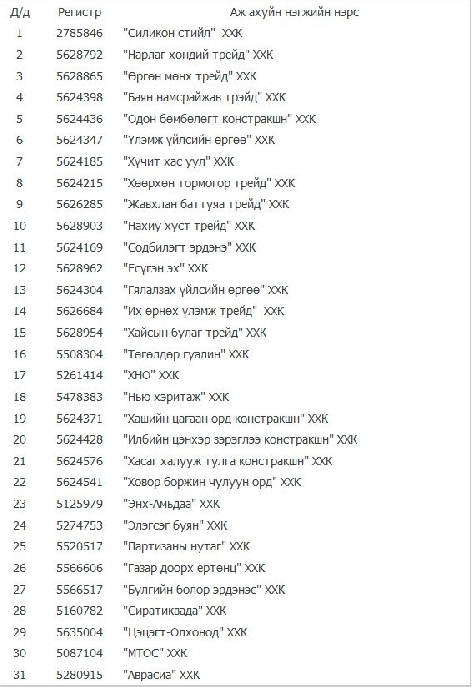 Татвараас зайлсхийгчид ихэвчлэн хуурамч баримтуудаар тайлан тооцоогоо хийдэг ажээ. Татварын албадаас хийсэн шалгалтаар ийм компаниудын заримыг нь саяхан илрүүлсэн байна. Тэдгээр нь Монгол улсын Татварын хууль тогтоомжийг ноцтойгоор зөрчиж, НӨАТ-ын падаанд хуурамч бичилт хийсэн байв. Импортын бараанд нэмэгдсэн өртөгийн албан татвар төлсөн мэт хуурамч баримтаар их хэмжээний татвараас зайлсхийсэн компаниудын жагсаалтанд "Силикон стийл", "Зууны сод хийц", "Ганбат өргөө" зэрэг 31 аж ахуйн нэгж оржээ. Иймд Татварын ерөнхий газраас тэдгээр аж ахуйн нэгжүүдийн үйл ажиллагааг зогсоох хүртэл хариуцлага тооцохоор болсон байна.