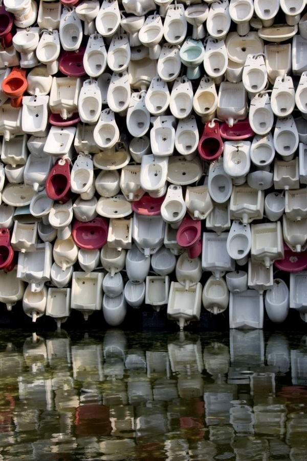 Хятад дахь Гуандун мужийн Фошаны "Шиван"цогцолборт газарт энэ сонирхолтой газар байдаг юм байна. 100 метр урт, бараг 5 метр өндөр ханыг хамарсан 10,000 ширхэг суултуураар хийсэн хана бүхий усан оргилуурыг 2009 онд барьсан юм байна