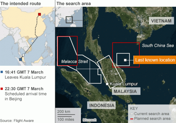 Хятадын Засгийн газар Малайзид хандан, бямба гаригт алга болсон иргэний нисэхийн онгоцыг хайх ажлыг тууштай хийхийг уриалжээ. Малайзийн албаныхны мэдэгдсэнээр, 239 хүнтэй уг онгоц хянах самбараас алга болсноос хойш эрлийн ажлыг улам эрчимжүүлж байгаа аж. Мөн зорчигчдын ихэнх нь хятад хүн байжээ.