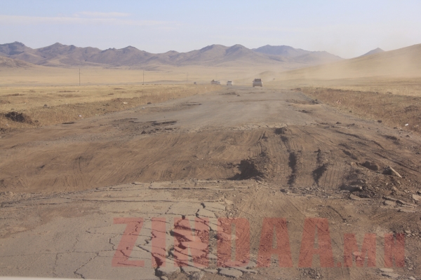 Улаанбаатараас Дархан-Уул аймаг чиглэсэн автозамаар зорчиход иргэдэд ихээхэн хүндрэлтэй байна. Зурагт харуулсан байдал өнгөрсөн долоо хоногийн сүүлч үеийнх юм. Одоо ч энэ хэвээр. Өнгөрсөн сараас цаг агаар дулаарч, газрын хөрс гэссэнээс замын эвдрэл гарсан бололтой. Баруунхараагаас цааш 20 орчим км явахад замын эвдрэл улам бүр нэмэгджээ. Бүр 50 хүрэхгүй метр зайтай асфальтан хуулга хөрстэйгөө эргэсэн, энд тэндгүй овон товойсон эвдрэл давтагдсан байна. Зарим хэсэгт цементтэй шороо овоорсон байхад зарим хэсэг замын асфальтан хуулга хэдэн хэсэгт хуваагдаж, шороон зам бий болчихож. Жижиг автомашины жолооч нар байн байн зогсож эвдрэлээс үүссэн том булыг холдуулж хаячихаад цааш хөдөлж байгаатай хэдэнтээ тааралдав. Ийм нөхцөлд автозамын осол гарахыг үгүйсгэхээргүй юм байна.