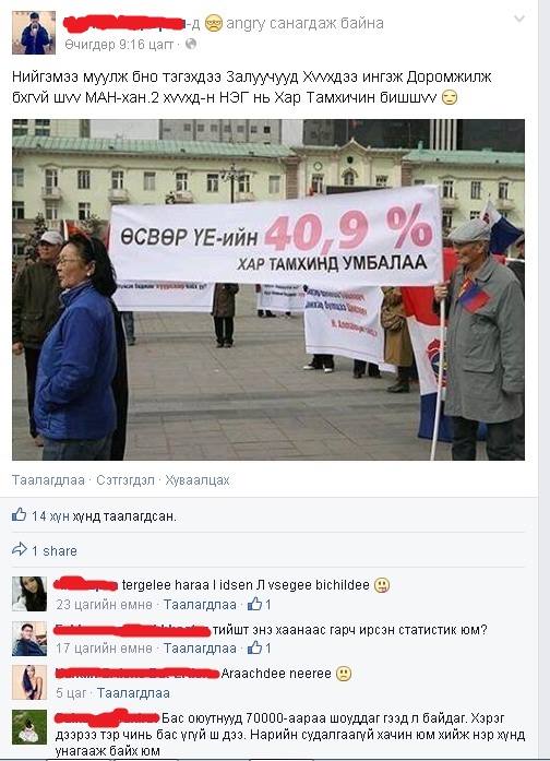 Жагсаал цуглаан хийж нийгмээ шүүмжлэх нь сөрөг хүчин гэдгээ харуулна гэсэн буруу ойлголттой МАН-ын хуурамч судалгаа олон хүний нүдийг бүлтийлгэв. Тодруулбал тэд Чингисийн талбайгаар дуу нийлүүлэн айл бүрт нэг янхан, өсвөр үеийнхэн хар тамхинд живлээ гэхчилэн орилож байсан юм. Харамсалтай нь дээрх судалгаа барьсан зурагт самбар зэрэг нь ямар ч хүн харсан хуурамч дүнтэй байсан. МАН-ын гишүүдийн харж буйгаар бол хоёр хүүхдийн нэг нь хар тамхинд донтсон байгаа аж. Харамсалтай нь тэдний гаргасан энэ тоо дэлхийн ямар ч буурай хөгжилтэй ядуу орныхтой тэнцэхгүй байна. Иймд залуус "Нийгмээ муулж болно. Гэхдээ залуус, хүүхэд үеэ ингэж доромжлож болохгүй гэдгийг хэлж байна"