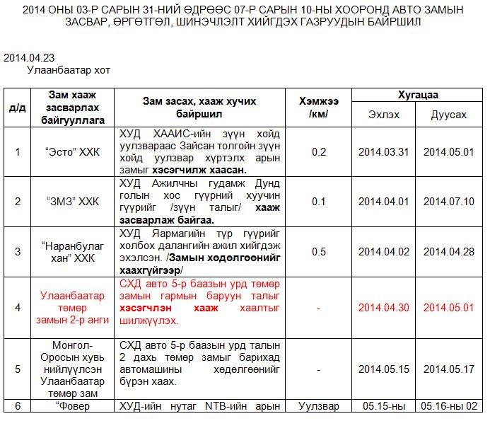 Долдугаар сарыг дуустал замын ажлыг хүснэгтээр