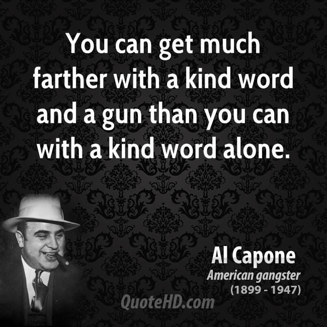Аятайхан зөөлөн үгтэй гээд амжилтанд хүрэхгүй ээ, аятайхан зөөлөн хэлсэн үгэндээ гар буугаар хачир баривал харин хол явна шүү. Аль Капоне