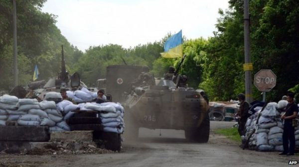 Украйны Батлан хамгаалах яамны мэдэгдэж байгаагаар, босогчид хуягт тээвэрлэгч, байлдааны автомат буу, гранатаар зэвсэглэсэн байжээ. Өчигдөр Донекцийн салан тусгаарлагчид нэгэнт тусгаар тогтнолоо зарласан тул Засгийн газрын цэргүүд газар нутгийг нь орхин гарах ёстой гэж мэдэгдсэн юм.