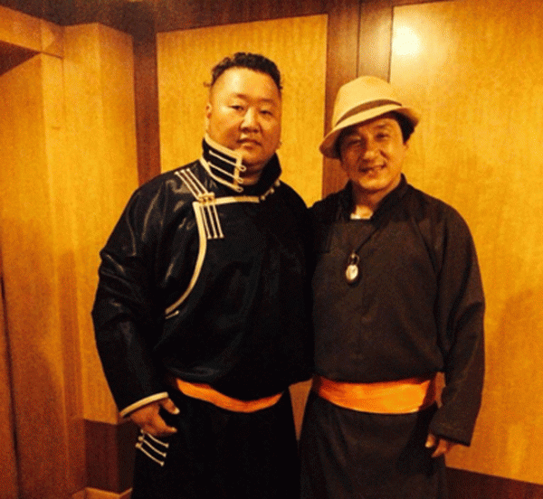 2015 оны эхний өдөр дэлхий даяар нээлтээ хийх “Арслангийн сүрт тэнгэрийн жанжин” нэртэй уран сайхны кино зураг авалтаа эхлүүлээд байгаа аж. Тус кинонд адал явдалт киноны домог болсон дэлхийн кино ертөнцийн нэрт жүжигчин Jackie Chan, Хамаг Монгол төслийн дуучин М.Баясгалан нар хамтран дүр бүтээж байгаа юм байна. Жүжигчин Jakie Chan-тай бүтээсэн зураг авалтаа дуусгаад М.Баясгалан Монгол түмнийхээ нэрийн өмнөөс үндэснийхээ дээлийг Jakie Chan-д бэлэглэжээ. - See more at: http://dnn.mn/%D0%BD%D1%8D%D1%80%D1%82-%D0%B6%D2%AF%D0%B6%D0%B8%D0%B3%D1%87%D0%B8%D0%BD-jakie-chan-%D0%B4-%D0%BC%D0%BE%D0%BD%D0%B3%D0%BE%D0%BB-%D0%B4%D1%8D%D1%8D%D0%BB-%D0%B1%D1%8D%D0%BB%D1%8D%D0%B3%D0%BB%D1%8D%D0%B6%D1%8D%D1%8D/#.dpuf