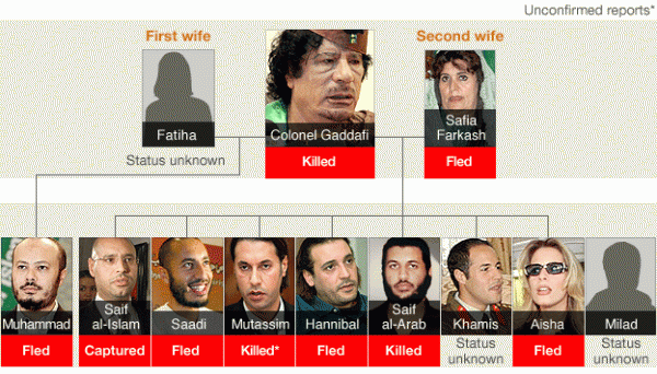 7. Ливичүүд түүнийг "аль-ах аль-каид ассаура" ("хувьсгалын удирдагч ах") болон "аль-ах аль-акыд" ("ах хурандаа") хэмээн авгайлдаг