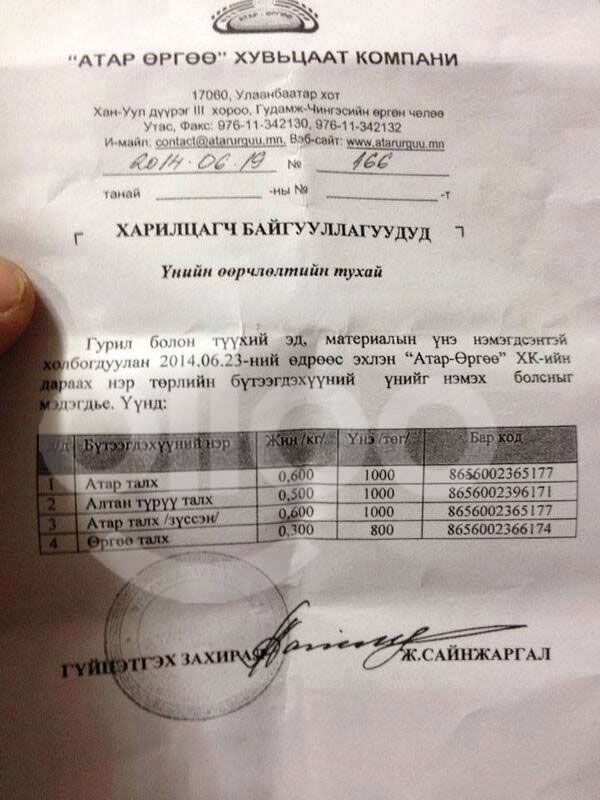 Атар талх үнээ өнөөдрөөс эхэлж нэмж байна.Түүхий эд болох гурилын үнэ нэмэгдсэнтэй холбогдуулан нэмж байгаа хэмээн тайлбарлаж байсан юм. Дэлгүүрүүдэд 1000 төгрөгөөр гарч нийлүүлж байна.
