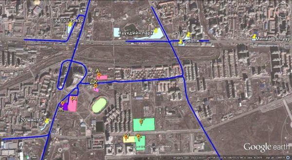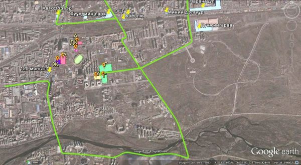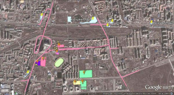 “А”, “Ж” зогсоолын нэгэн адил замаар явж, Цэнгэлдэх хүрээлэнгийн баруун талд тэмдэгт заасан газар байрлуулна.