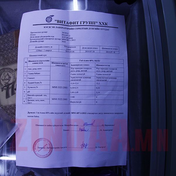-Тийм юм байхгүй. Тэгэж худлаа хэлж яаж байгаа юм бол доо. Тэр гоёын багцаас үлдсэн хэд хэдэн ундаа одоо ч байгаа. 2014 оны 3 сарын 4-нд үйлдвэрлэгдсэн ундаанууд бий. Манайх жижигхэн дэлгүүр. Хугацаа хэтрээд аливаа юмыг хөгзрүүлээд суухгүй. Бараагаа бага багаар авдаг хурдан эргэлдүүлдэг. Би өөрөө эрүүл ахуйч хүн энэ талаар мэднэ. Та нар харж байгаа бол манайх олон хөргүүр хөлдөөгчтэй. Цэвэр орчинд бараагаа зардаг. Тэр ундааны асуудал гарсанаас хойш хэл чимээгүй гэнэтхэн МХЕГ-аас шалгалт орж ирээд, дэлгүүр түгжиж байгаад шалгасан. Зөрчил илрээгүй. Харин ч Витафит компаниас энэ асуудалд арга хэмжээ авч хурдан шийдвэрлэж чадаагүй. Дэлгүүрийн нэрийг гаргасандаа уучлалт гуйгаад өөрийн лабортортоо шинжлүүлсэн бичгээ явуулсан. Тэднээх өөрийнх нь лаборторын бичиг юм чинь муу гарсан ч муу гэж явуулахгүй биз. Ямарч байсан шинжилгээний хариу сайн гарсан гэсэн бичиг явуулсан байна лээ. Мөн манайх камертэй. Ундаа худалдаж авч байхад камерт юу ч гараагүй. Хар юм харагдаагүй. Цэвэр ундаа байсан.