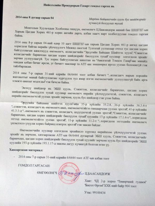 “Нүүрс” хөтөлбөрийг хэрэгжүүлэх явцдаа мөнгө угаасан байж болзошгүй гэх үндэслэлээр АТГ-аас Ерөнхий сайдын ахлах зөвлөх Л.Гансүх болон түүний туслахаар өмнө нь ажиллаж байсан М.Тулга, Э.Төмөрбаатар, Г.Батхуяг нарыг баривчлан саатуулаад байгаа юм. Таслан сэргийлэх арга хэмжээ авхуулсан дээрх хүмүүсийг АТГ-аас өмгөөлөгчидтэй нь уулзахыг хориглосон хэвээр байгаа аж. Л.Гансүхийн өмгөөлөгч Ц.Баасандорж Төв аймгийн цагдан хорих төв орж, үйчлүүлэгчтэйгээ уулзах гэсэн боловч АТГ-аас зөвшөөрөл өгөөгүй гэнэ. Тиймээс өмгөөлөгч Ц.Баасандорж Нийслэлийн прокурорын газар болон ШШБЕГ-ын дарга, хурандаа С.Баяндалай болон Хүний эрхийн комисст хандан гомдол гаргасан байна.