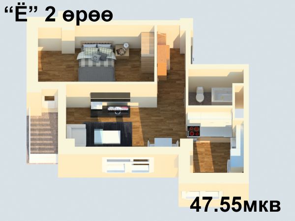2015 оны гуравдугаар улиралд ашиглалтанд орох 77 айлын орон сууцны 12 давхар орон сууцанд захиалга авч эхэллээ. Манай байрны давуу тал нь том цонх, өндөр таазтай, зам дагуу, хүүхдийн тоглоомын талбай, цэцэрлэг, граж гэх мэт таны амьдрах ая тухтай, таатай орчинг бүрдүүлсэн. Та нэгээс хоёр өрөө байрны сонголттой 32 мкв- 57 мкв хүртэлх өрөөнүүдээс сонгох боломжтой.