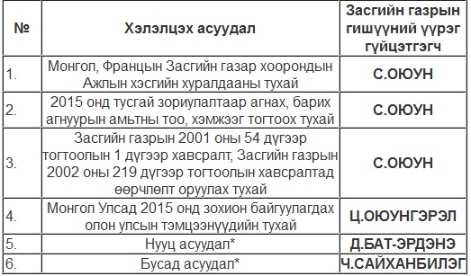 Монгол Улсын Ерөнхий сайд асан Н.Алтанхуяг Засгийн газрыг бямба гараг бүр хуралдуулдаг байсан бол Ч.Сайханбилэг Ерөнхий сайд болсноор уг хуваарьт өөрчлөлт оруулж даваа гараг бүрийн 16:00 цагт Засгийн газрыг хуралдуулах шийдвэр гаргасан юм. Ирэх даваа гарагийн Засгийн газрын хуралдаанаар дараах асуудлыг хэлэлцэнэ.