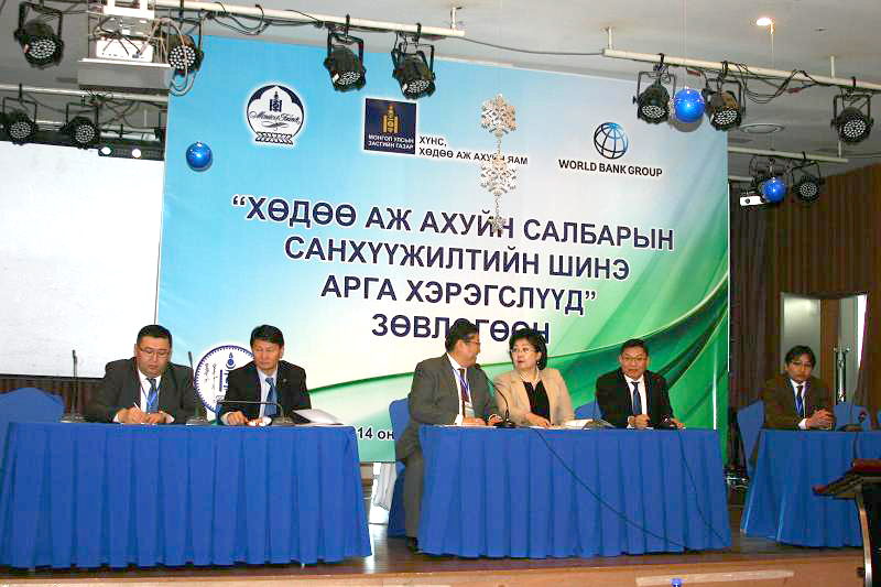 Банкны систем үүсч бэхжсэний 90 жил, Хүнс, Хөдөө Аж Ахуйн яамны 90 жилийн ойн хүрээнд “Хөдөө аж ахуйн салбарын санхүүжилтийн шинэ арга, хэрэгслүүд” сэдэвт чуулга уулзалтыг Монголбанк, ХХААЯ болон Дэлхийн банкны ОУ-ын санхүүгийн корпораци /IFC/ хамтран 12 дугаар сарын 15-ны өдөр зохион байгуулж байна. Зөвлөгөөнд Хүнс, Хөдөө Аж Ахуйн яамны сайд Р.Бурмаа, Төрийн нарийн бичгийн дарга Х.Золжаргал, Монгол Улсын Ерөнхийлөгчийн ХАА-н бодлогын зөвлөх Л.Эрхэмбаяр, Дэлхийн Банкны Группийн зөвлөх Ноён Николас Бадд, ЕСББ-ны Монгол дахь суурин төлөөлөгч Ноён Матъю Ли Блан хөдөө аж ахуй, банк санхүүгийн салбарын төлөөлөгчид оролцон илтгэл тавьлаа.