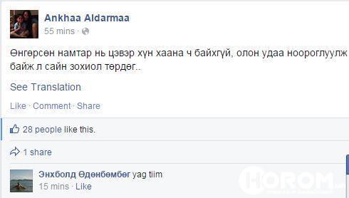 Нэгнийгээ түлж, эрүүл мэндэд нь ноцтой хохирол үзүүлсэн хэрнээ жүжигчин Ц.Алдармаа “Амьдралд хүн бүр алддаг” гэж биеээ өмөөрөн сургаал айлдсан нь оны онцлох яаруу бөгөөд тэнэг жиргээ болов.