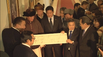 Үндэсний эрх чөлөөний хувьсгалын түүхт 103 жилийн ойн өдрийн хүрээнд Монгол Улсын Дээд Хурлын дарга, Сайн ноён хан, Ерөнхий сайд Намнансүрэнгийн хөргийг Төрийн ордонд залах ёслол өнөөдөр / 2014.12.29 / боллоо.